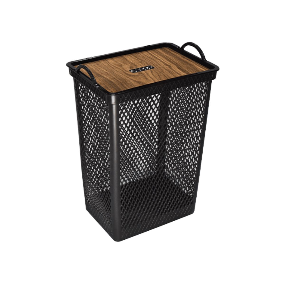 O cesto organizador telado de 49 litros com tampa e acabamento label madeira é ideal para quem precisa de grande capacidade com visual organizado e moderno.