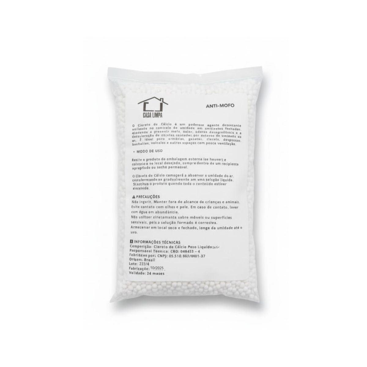 O cloreto de cálcio é um poderoso agente dessecante utilizado no controle da umidade em ambientes fechados, ajudando a previnir mofo, bolor, odores desagradáveis e a deteorização de objetos causados por excesso de umidade no ar. É ideal para armários, gavetas, closets, despensas, banheiros, veículos e outros espaços com pouca ventilação.