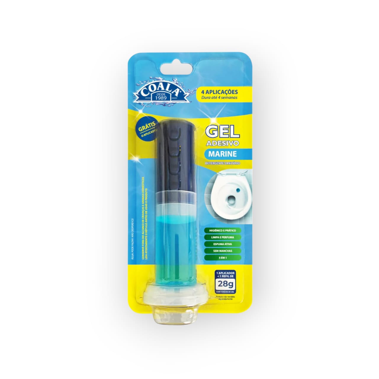 Coala Gel Adesivo 4 Aplicações é um produto que ajuda a manter o vaso sanitário limpo e perfumado, com praticidade e higiene na aplicação, sem o uso de cestinha ou pastilha aplicada com a mão. Basta aplicar na parede do vaso e a cada descarga ele age limpando e perfumando de forma eficaz e sem acumular bactérias.