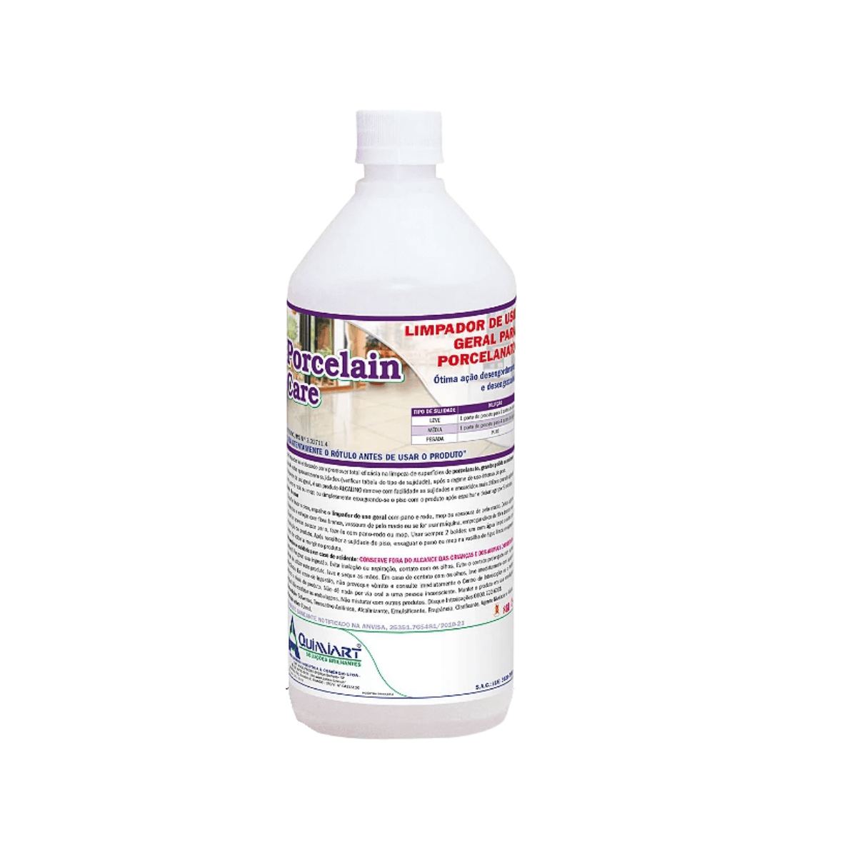 Este Limpador foi elaborado para promover total eficácia na limpeza de superfícies de Porcelanato, Granito Polido ou Mármore, quando estas foram contaminadas por sujidades leves, médias e pesadas, após longo regime de uso sem manutenção. O Limpeza Geral tem uma excelente ação desengordurante e Desengraxante quando aplicado com pano e rodo ou mop; ou simplesmente enxaguando-se o piso com o produto após espalhar e deixar agir por 5 minutos. (verificar tabela de diluição)