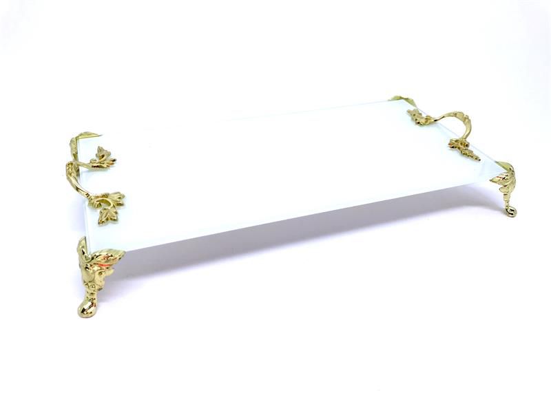 BANDEJA DE VIDRO BRANCA C/OURO C/ALCAS 12X25