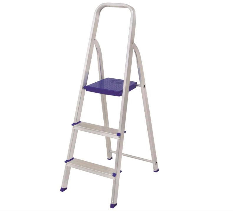 Leve e resistente, a escada é confeccionada em alumínio e apropriada para o uso doméstico. Com ela, você consegue alcançar prateleiras, armários e outros locais mais altos, reduzindo o risco de acidentes.